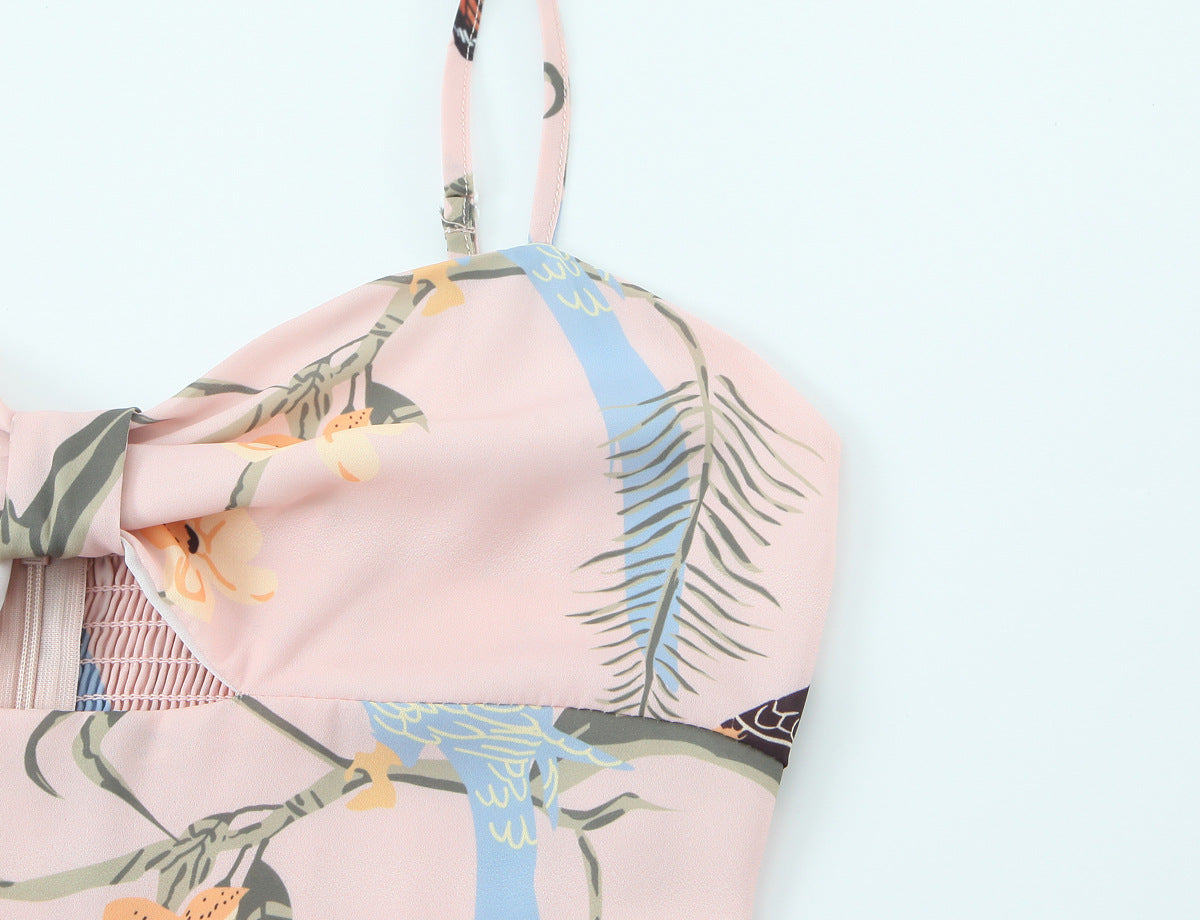 Bohemian Floral Belted Ruffle Dress with V-Neckline, Long Vacation Dress